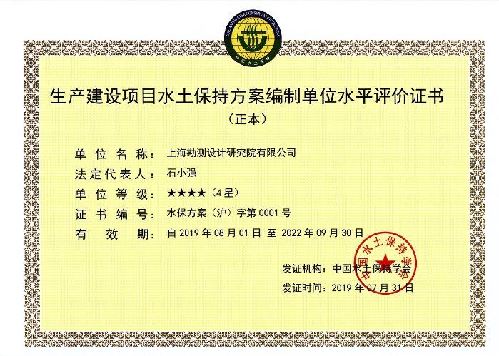 水土保持方案編制水平評價證書4星