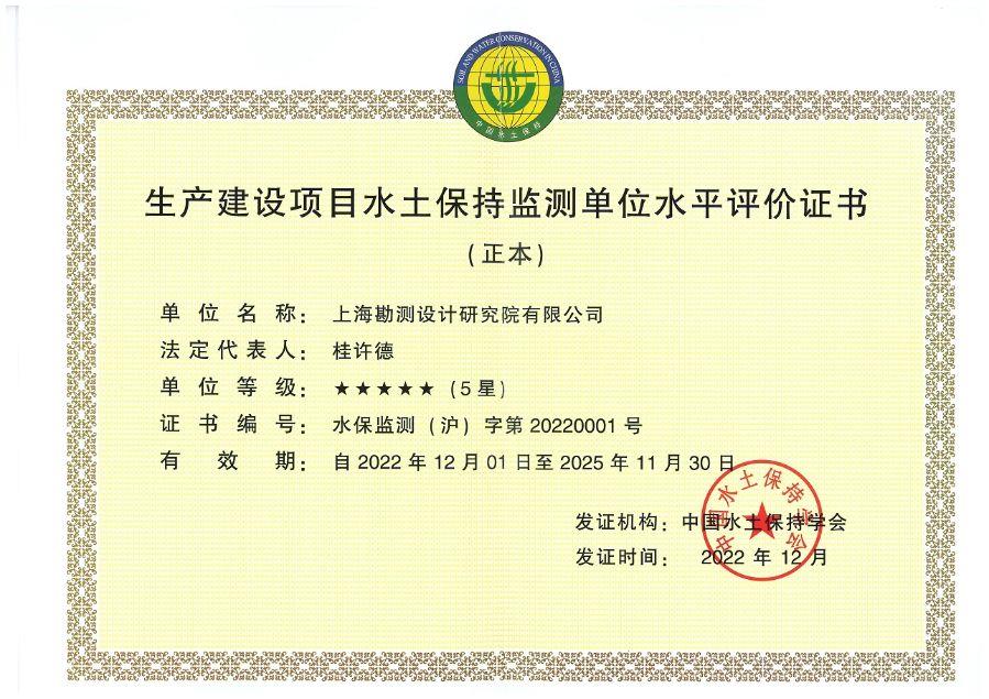中國水土保持協會生產建設項目水土保持監測單位水平評價證書5星